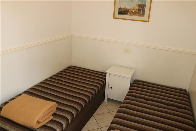 Between the shore of Lake Garda and the hills surrounding Bardolino, the Bellavista Village offers a perfect solution for those who want to reach the historic center of Bardolino and its beaches (1 Km) but also the cycling tracks in the area. On the ground floor of one of the villas in the village we rent a large three-room holiday apartment, which shares with the owners of the first floor a large garden of 600 square meters with wonderful Mediterranean vegetation and lake view. Built and furnished in the typical style of the Italian villas of the seventies, this holiday apartment offers various comforts: kitchen with dishwasher, microwave, free wi-fi, parking space on the grounds as well as the availability of the large communal swimming pool of the village (about 200 meters distance). Near the renowned Hollywood discotheque in Bardolino, the apartment has a double bedroom, another bedroom with a double sofa bed, a bathroom with bidet and shower, a three-burner kitchenette and a large living room with SAT-TV, sofa and dining table. The large porch overlooking the garden guarantees fun dinners even during the summer storm.